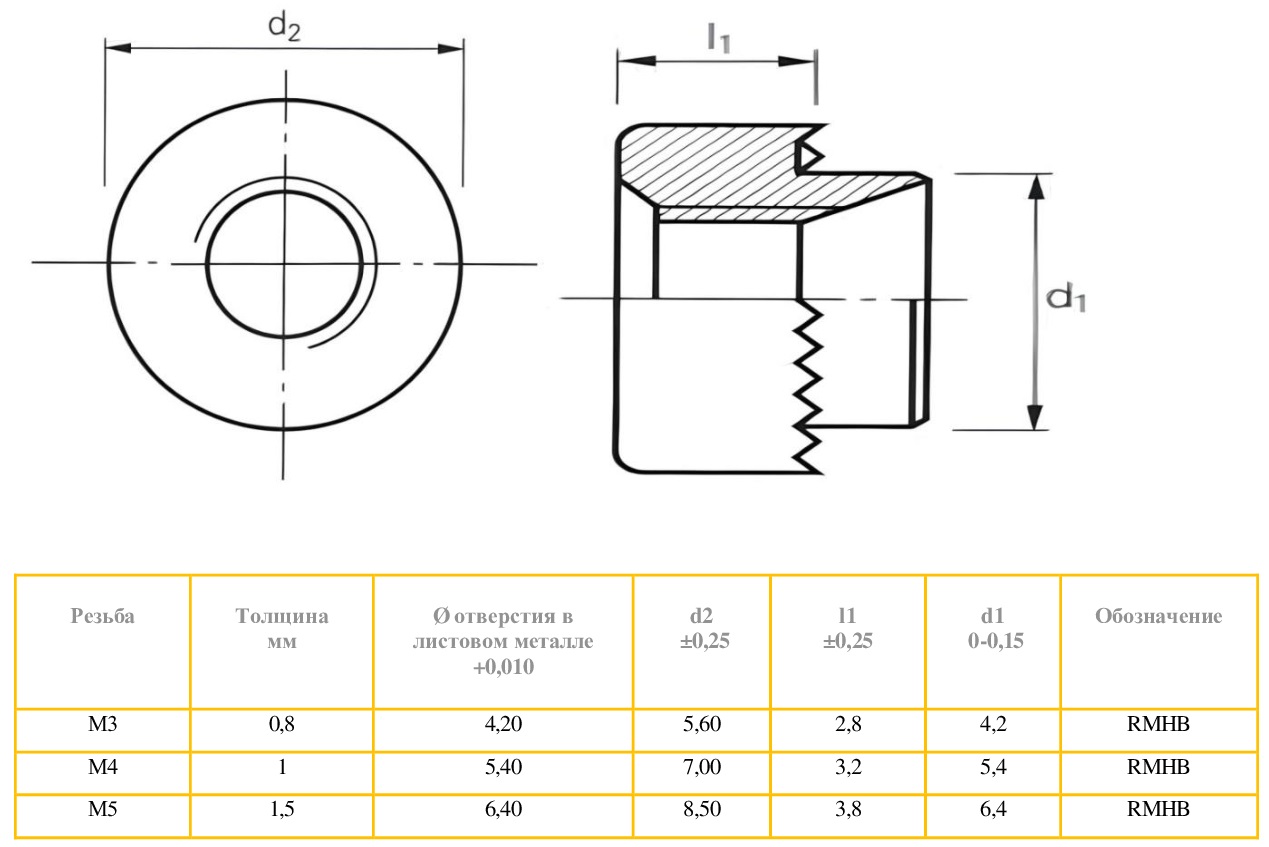 M4 HANK SERT MINI 22 SWG ST/ RMHB-M4-22 gz Гайка развальцовочная резьбовая М4 стальная оцинкованная для толщины металла 0,8 мм