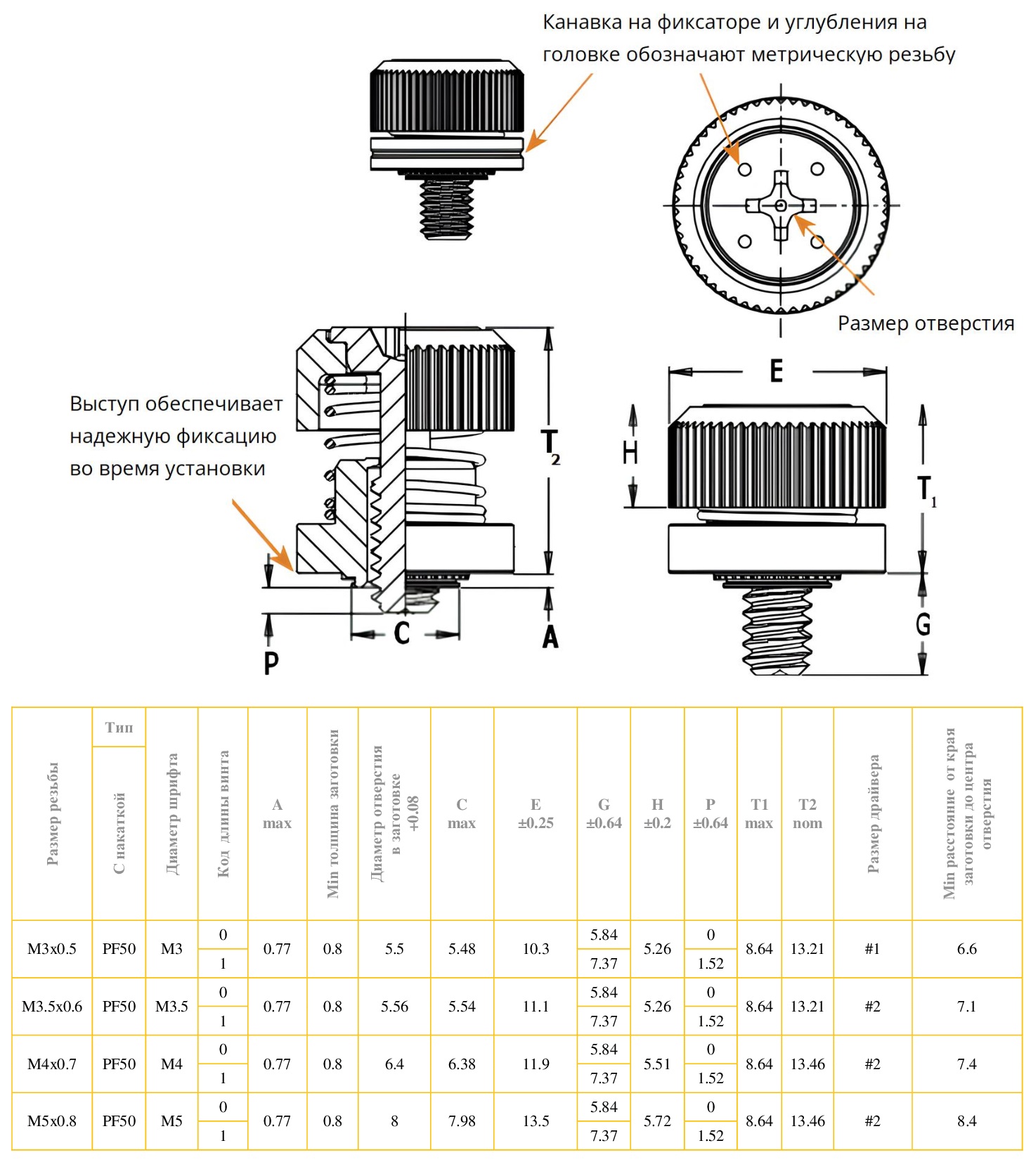 Невыпадающие винт PF50