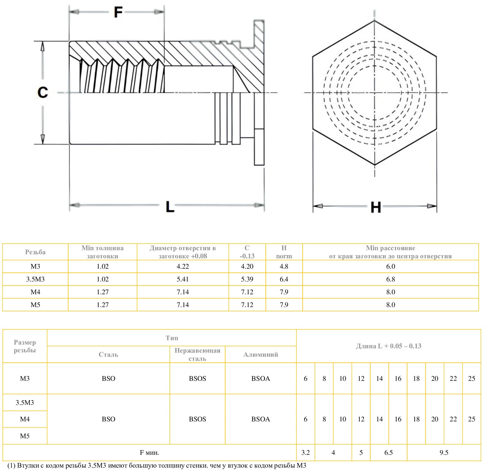 BSOA-M3-06 Втулка резьбовая запрессовочная неполнопроходная М3х06 алюминиевая